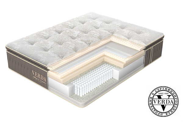 Ортопедический матрас премиум класса Verda Balance Pillow Top (Верда Бэланс Пилоу Топ) выполнен с дополнительным Евротоппером (Pillow Top), который придает больше удобства любому спальному месту. Матрас является односторонним и изготовлен из натуральных наполнителей. Жесткость в матрасе регулируют натуральные наполнители - конский волос и натуральный латекс (каждый слой по 3 см), их сочетание с двойным пружинным блоком Double Spring Plus (1000 пружин на спальное место) «пружина в пружине» помогает позвоночнику расслабиться. При небольших нагрузках работает внешняя пружина, а при увеличении давления на матрас работает внутренняя пружина, тем самым обеспечивается равномерная поддержка по всей поверхности матраса, компенсируя разницу в весе партнеров.